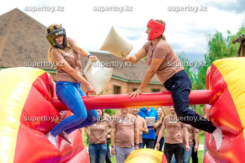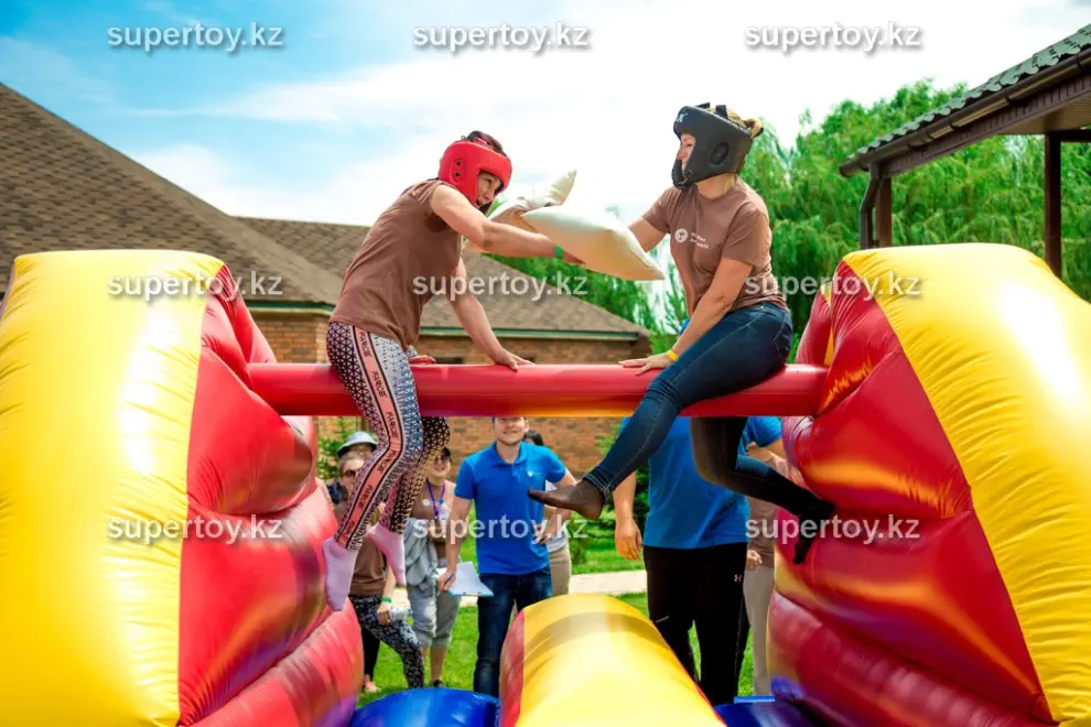 Аттракцион можно установить и в помещении, самое главное, чтобы было достаточно места для монтажа конструкции и отсутствие острых предметов. Конкурс «Бой на подушках» станет изюминкой любого мероприятия. В этом развлечении с большой радостью поучаствуют и малыши, и подростки, и взрослые гости. С первых же минут состязания у игроков просыпается азарт, они входят в кураж, и играть в бой подушками хочется все время! Данная забава перенесет Вас в детство и подарит незабываемые минуты искренней радости!