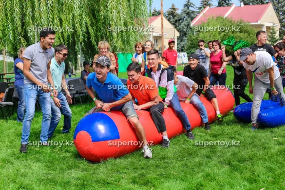Компания «Super Той» представляет мега увлекательный эксклюзивный аттракцион «Командные сосиски (торпеды)». Этот аттракцион станет идеальным решением для конкурсов с батутом на тимбилдинг и любое другое мероприятие! Если Вы любите активный вид отдыха, не можете и дня прожить без веселья, тогда командные сосиски – для Вас! Суть развлечения очень проста. Игроков делят на две команды по 5 человек. Каждая команда садится на надувной батут-торпеду и скачет по полю до финиша. Тот, кто смог добраться до него первым, объявляется победителем! Участникам предстоит пройти нелегкий путь, и при этом побороть безудержные приступы смеха и хохота, которые оттягивают заветную прямую все дальше. Такие командные конкурсы с батутом доставят огромное удовольствие и игрокам, и зрителям. Поверьте, даже самые серьезные начальники не смогут удержаться от смеха! Подобные конкурсы с батутом на тимбилдинг прекрасно формируют командообразование, сплоченный коллектив, ведь здесь важно действовать слаженно и сообща. Общая цель игроков – победить, а для победы необходимо единство сил и совместное упорство.