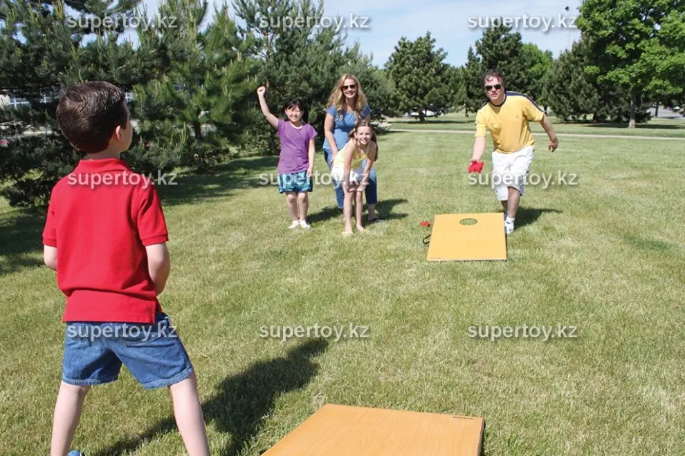 Аттракцион «Corn Hole» бесшумный, не требует суеты или чрезмерных физических усилий. В него с удовольствием играют дети и люди старшего возраста, мужчины и женщины. Все, что вам необходимо — сухая ровная площадка не менее 1х6 метров и настроение повеселиться.