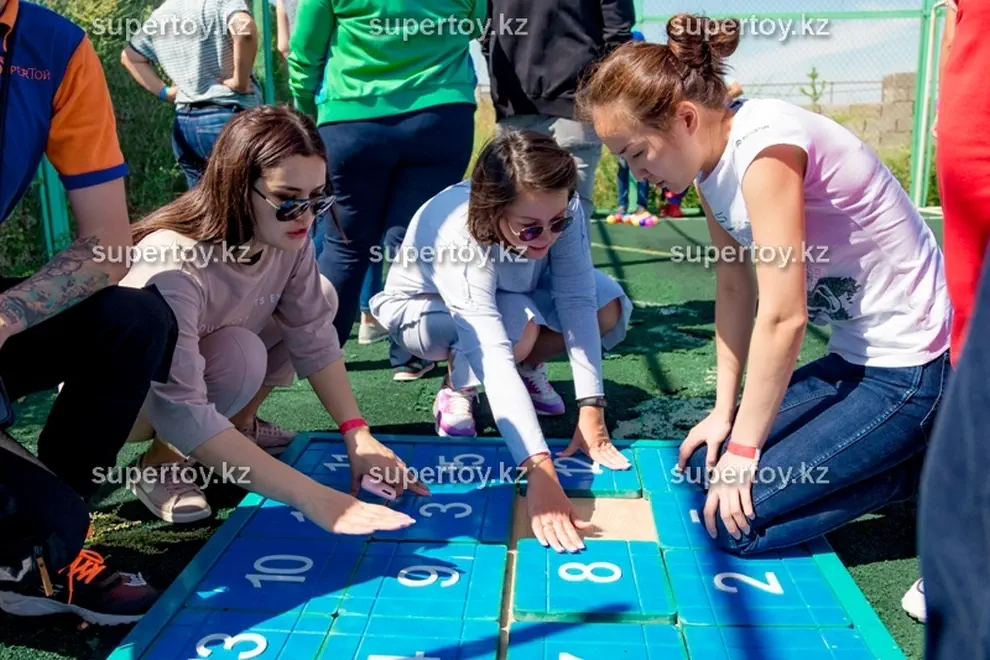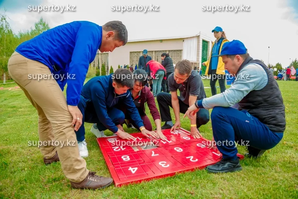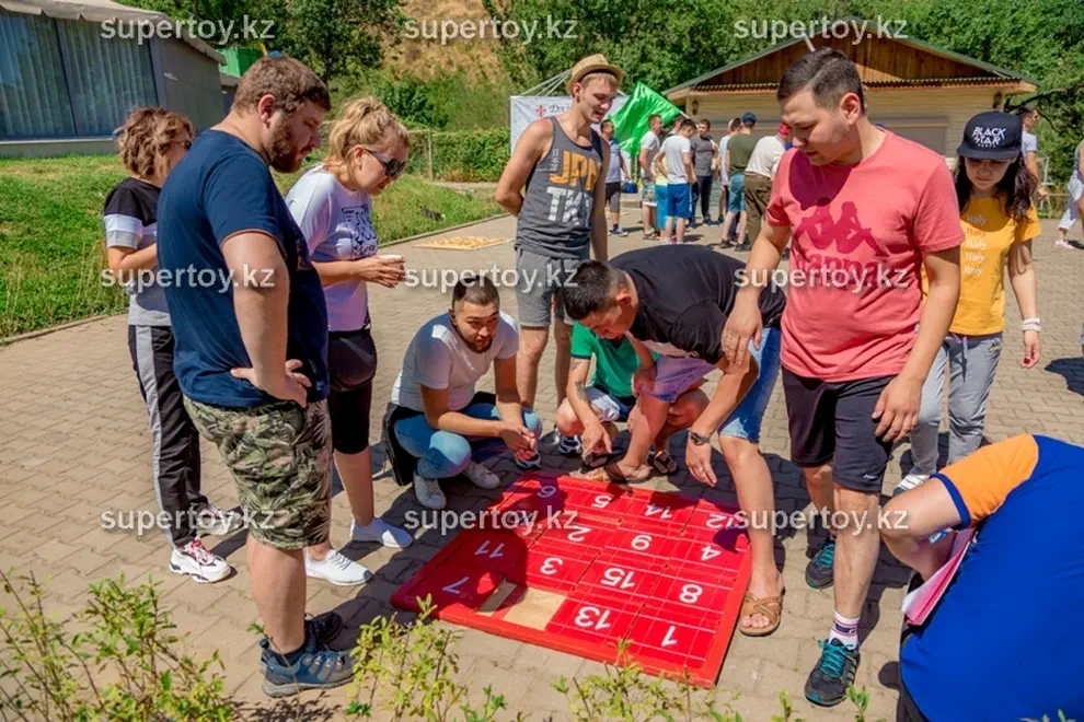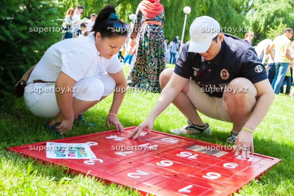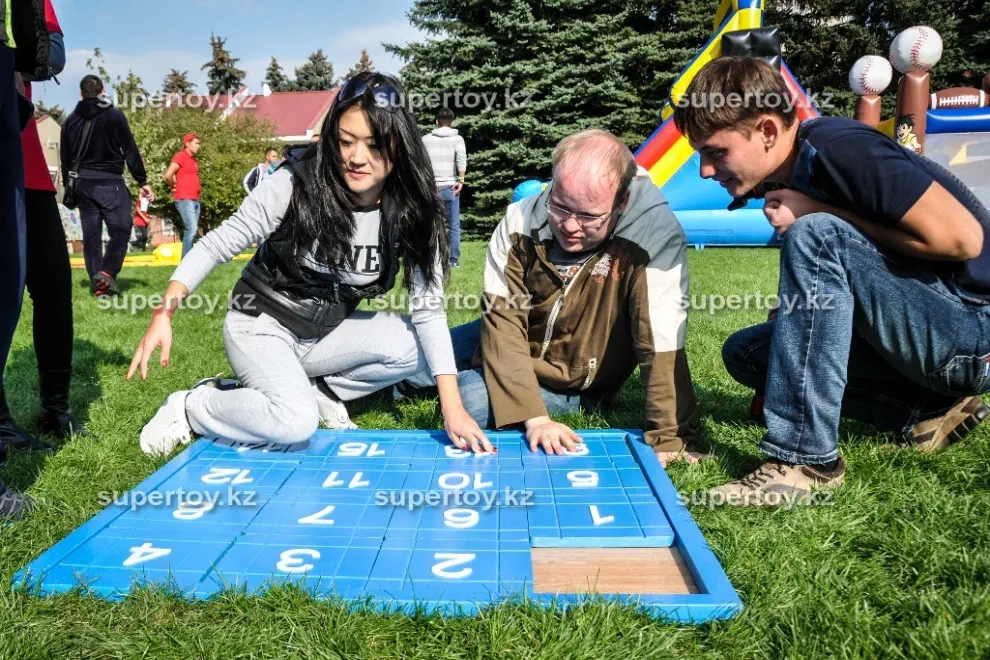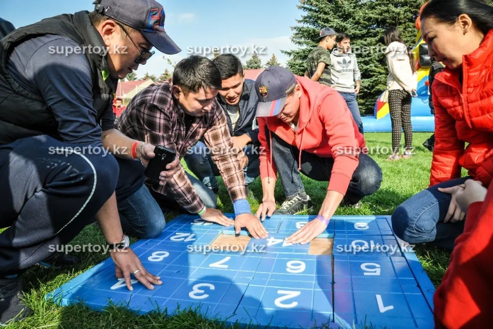Возьмите аттракцион «Мега пятнашки» в аренду на тимбилдинг или корпоратив – ему там обязательно найдется место! Никто из гостей не сможет пройти мимо интересной конструкции. Можно устроить командные соревнования, где игроки противоборствующих лагерей расставляют числа на двух полях на скорость. Кто быстрее собрал, тот и выиграл. Заказать аттракцион «Мега пятнашки» в аренду на свадьбу – тоже замечательная идея. Это даст возможность за общим занятием подружиться гостям, которые пока что не знакомы друг с другом. Наши клиенты могут выбрать дополнительные опции: мы брендируем аттракцион «Мега пятнашки» по Вашему желанию: фотография именинника или новобрачных, логотип Вашей компании или любое другое изображение. Такой вариант, несомненно, обладает многими преимуществами в зависимости от мероприятия: узнаваемость бренда, рекламный ход или оригинальное поздравление с праздником. Заказать аттракцион «Мега пятнашки» в аренду в Алмате стоит в «Super Тое» – мы гарантируем чистоту и аккуратный внешний вид головоломки, а также своевременную доставку по указанному адресу.