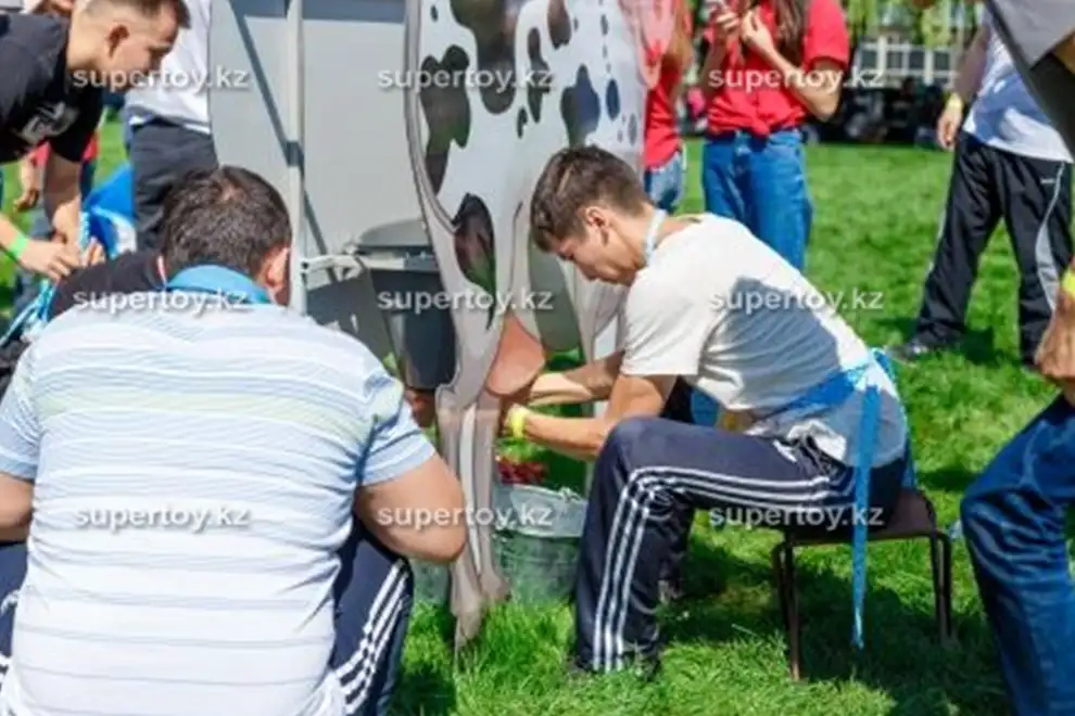 Вы когда-нибудь доили молочную корову? А ведь это животное играло не самую последнюю роль в хозяйстве наших предков-кочевников. Компания "Супер Той" представляет Вам и Вашим гостям поучаствовать в занимательном развлечении – аттракционе "Молочная корова". Примеряйте на себя роль дояра или доярки. Возможно, у Вас это настолько виртуозно получится, что Вам присвоят заслуженное звание.
