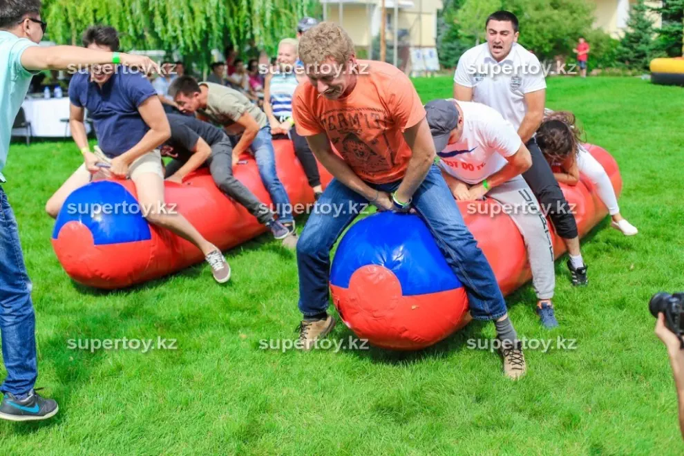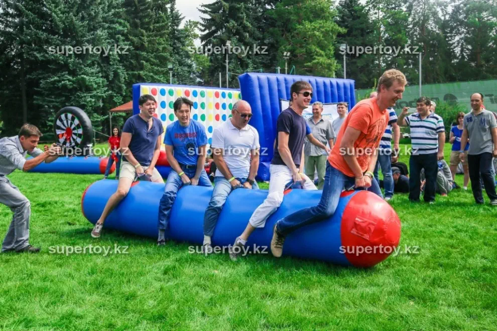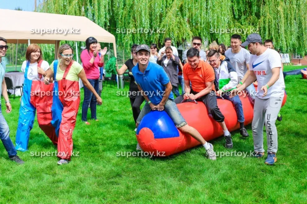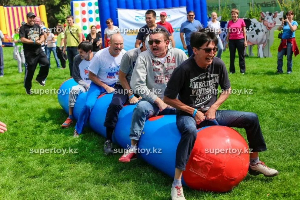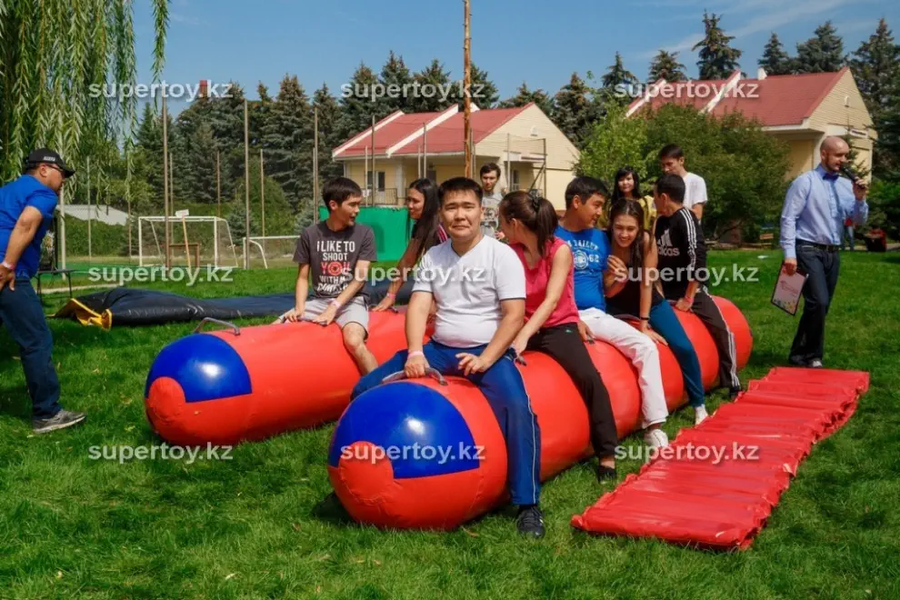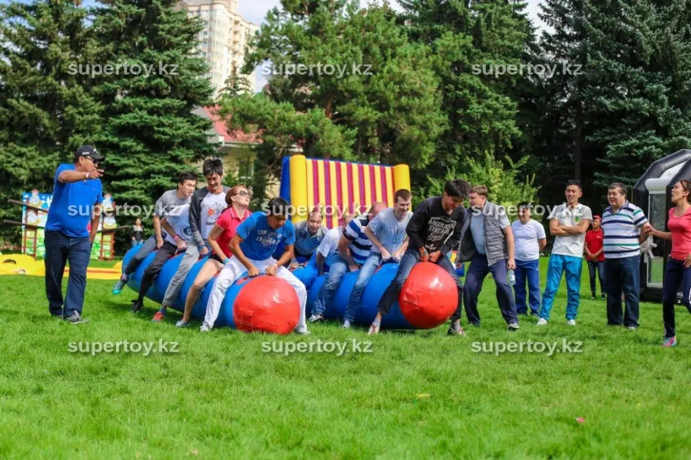 Компания «Super Той» представляет мега увлекательный эксклюзивный аттракцион «Командные сосиски (торпеды)». Этот аттракцион станет идеальным решением для конкурсов с батутом на тимбилдинг и любое другое мероприятие! Если Вы любите активный вид отдыха, не можете и дня прожить без веселья, тогда командные сосиски – для Вас! Суть развлечения очень проста. Игроков делят на две команды по 5 человек. Каждая команда садится на надувной батут-торпеду и скачет по полю до финиша. Тот, кто смог добраться до него первым, объявляется победителем! Участникам предстоит пройти нелегкий путь, и при этом побороть безудержные приступы смеха и хохота, которые оттягивают заветную прямую все дальше. Такие командные конкурсы с батутом доставят огромное удовольствие и игрокам, и зрителям. Поверьте, даже самые серьезные начальники не смогут удержаться от смеха! Подобные конкурсы с батутом на тимбилдинг прекрасно формируют командообразование, сплоченный коллектив, ведь здесь важно действовать слаженно и сообща. Общая цель игроков – победить, а для победы необходимо единство сил и совместное упорство.