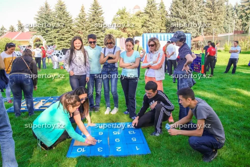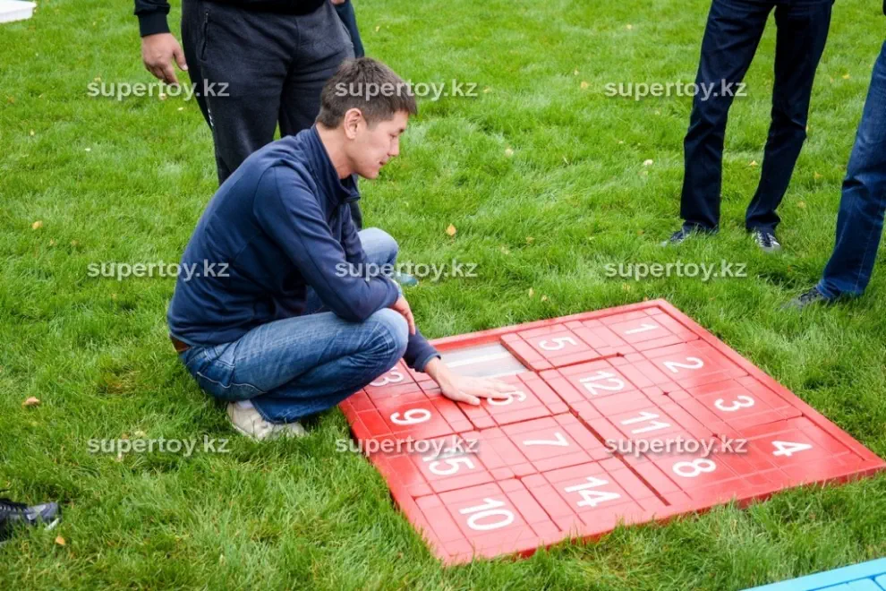 Возьмите аттракцион «Мега пятнашки» в аренду на тимбилдинг или корпоратив – ему там обязательно найдется место! Никто из гостей не сможет пройти мимо интересной конструкции. Можно устроить командные соревнования, где игроки противоборствующих лагерей расставляют числа на двух полях на скорость. Кто быстрее собрал, тот и выиграл. Заказать аттракцион «Мега пятнашки» в аренду на свадьбу – тоже замечательная идея. Это даст возможность за общим занятием подружиться гостям, которые пока что не знакомы друг с другом. Наши клиенты могут выбрать дополнительные опции: мы брендируем аттракцион «Мега пятнашки» по Вашему желанию: фотография именинника или новобрачных, логотип Вашей компании или любое другое изображение. Такой вариант, несомненно, обладает многими преимуществами в зависимости от мероприятия: узнаваемость бренда, рекламный ход или оригинальное поздравление с праздником. Заказать аттракцион «Мега пятнашки» в аренду в Алмате стоит в «Super Тое» – мы гарантируем чистоту и аккуратный внешний вид головоломки, а также своевременную доставку по указанному адресу.