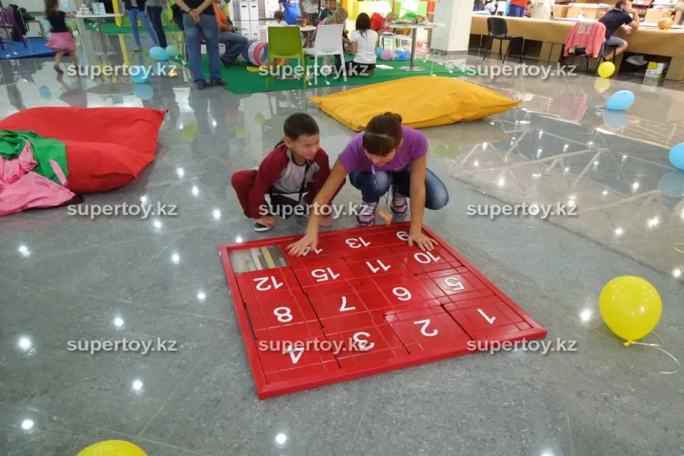 Это развлечение знакомо всем нам с детства. Компания «Super Той» предлагает аттракцион «Мега пятнашки» в аренду в Алмате в новом необычном формате. Поле нашей конструкции в десятки раз больше стандартного, поэтому играть в головоломку стало еще интересней! Модернизированная конструкция легко устанавливается на стол, пол или лужайку. Игра «Мега пятнашки» отлично подойдет для таких мероприятий, как тимбилдинг, корпоратив, свадьба, День рождения и даже деловая бизнес-встреча. Организуйте веселое командное соревнование с друзьями или коллегами – гигантский паззл наполнит праздник азартом и радостью! Аттракцион «Мега пятнашки» является прекрасной тренировкой для мозга. Он способствует развитию логического мышления, сообразительности, и считается полезным развлечением для всех без исключения. Вы можете заказать аттракцион «Мега пятнашки» в аренду в Алмате и на детский День рождения. Это отличное решение разбавить детские веселые забавы полезной головоломкой. Натренировавшись складывать числа в нужном порядке, ребята уже за несколько партий смогут без проблем собирать паззл.