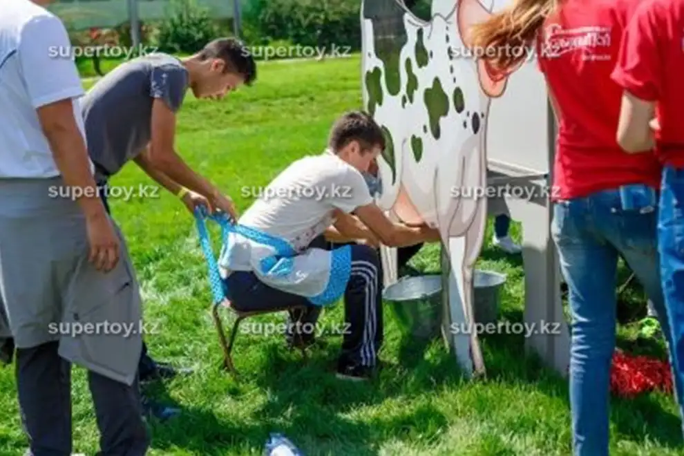 Вы когда-нибудь доили молочную корову? А ведь это животное играло не самую последнюю роль в хозяйстве наших предков-кочевников. Компания "Супер Той" представляет Вам и Вашим гостям поучаствовать в занимательном развлечении – аттракционе "Молочная корова". Примеряйте на себя роль дояра или доярки. Возможно, у Вас это настолько виртуозно получится, что Вам присвоят заслуженное звание.