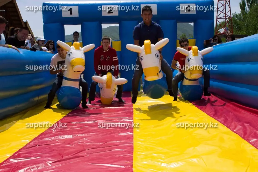 Заказать батут «Скачки на надувных лошадях» в аренду в Алматы Вы можете у нас – мы гарантируем чистоту и привлекательный, аккуратный внешний вид конструкции и всех ее элементов. Ну а восторг, который Вы получите от участия в этой забавной игре, просто неописуем!